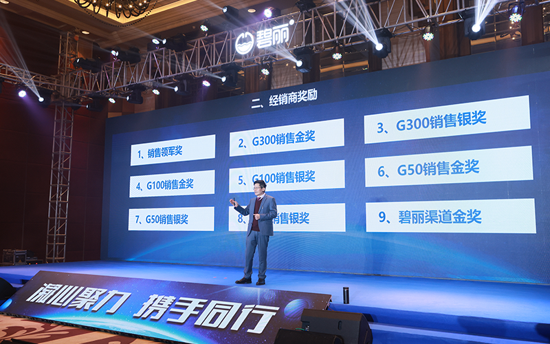 為了回報(bào)各位碧麗家人,答謝廣大終端客戶,2023年碧麗將以更為優(yōu)質(zhì)的產(chǎn)品、心動(dòng)的政策感謝大家的支持,激勵(lì)各位經(jīng)銷商伙伴不斷前進(jìn)。峰會(huì)上,碧麗集團(tuán)公布了2023年?duì)I銷政策、激勵(lì)政策、電商政策,表彰了"銷售冠軍獎(jiǎng)"、"銷售領(lǐng)軍獎(jiǎng)"、"G100銷售金獎(jiǎng)"、"G100銷售銀獎(jiǎng)"等多個(gè)獎(jiǎng)項(xiàng),并頒發(fā)了獎(jiǎng)牌、豪華獎(jiǎng)品以資鼓勵(lì),真正的為經(jīng)銷商帶來(lái)了看得見的實(shí)惠。